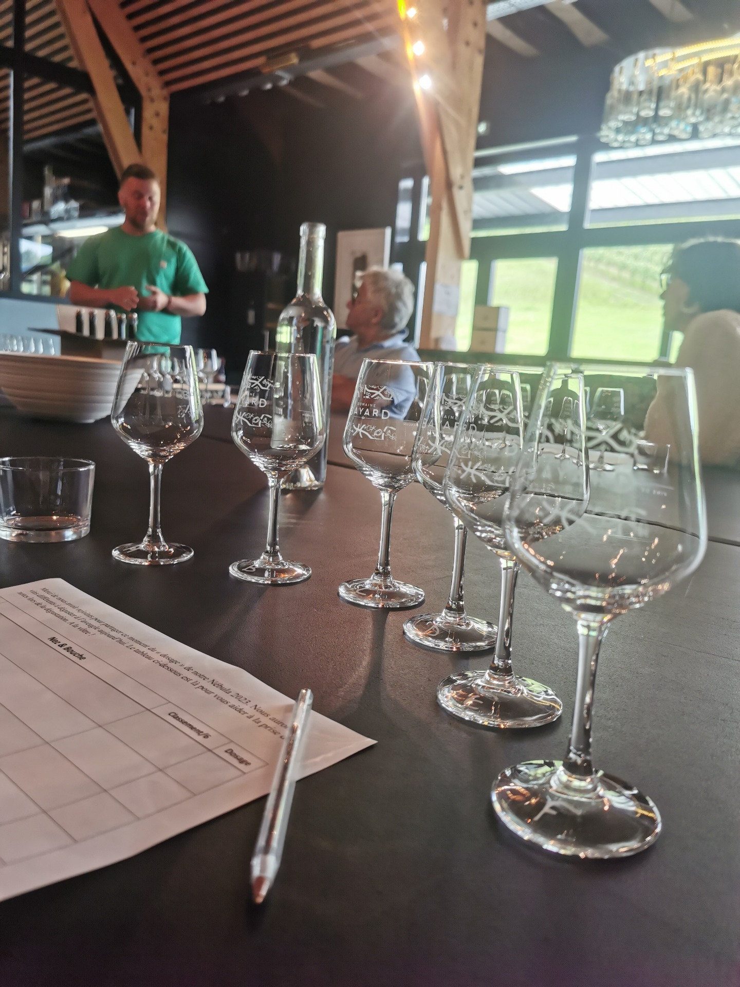 Devenez œnologue d'un jour grâce à une expérience confidentielle : le dosage de notre vin effervescent, le Nébula. Trois vins dégustés à l'aveugle pour affiner vos sens, échanger vos impressions et contribuer au choix final avant de partager un apéritif gourmand aux saveurs locales.